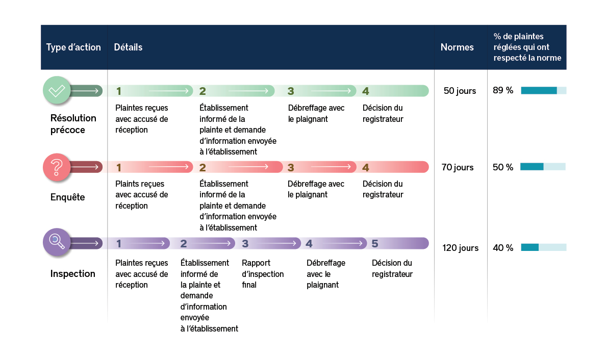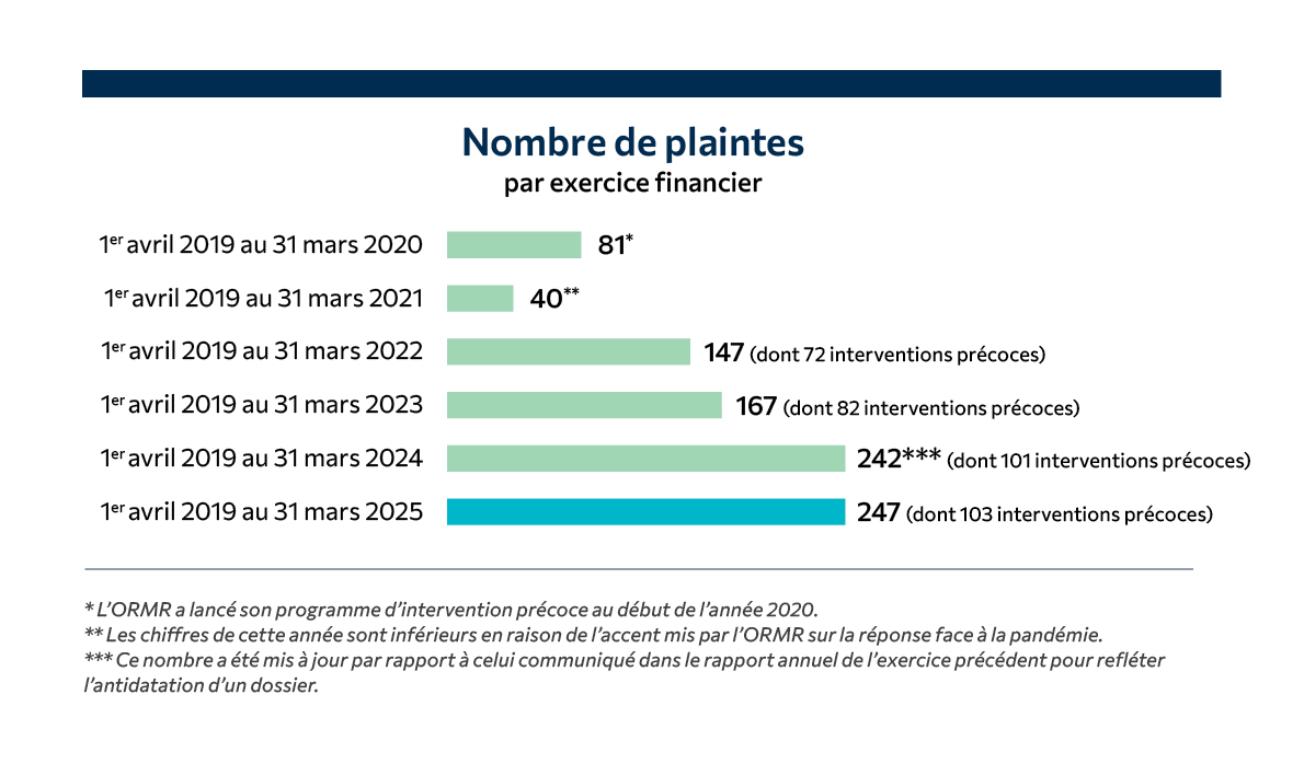 Consultez cette infographie pour savoir comment l’ORMR traite les plaintes et connaître les résultats éventuels.